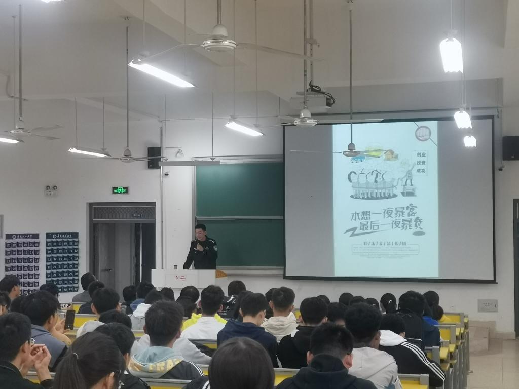 郑宇以一起大学生陷入传销组织的真实案例为开场白,向同学们介绍了什么是传销;然后以详实的法律知识为内容,开展了防范传销安全教育,帮助广大学生认清传销的违法犯罪性质、欺诈本质和严重危害。