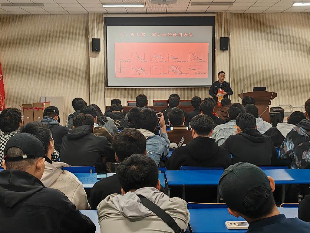 培训中,彭广峰结合高校火灾案例、校园常见消防安全隐患、尤其是校园电动车火灾等丰富详实的案例剖析,深入浅出地讲解了消防安全的重要性;并详细介绍火灾种类、灭火基本方法、灭火器使用流程、火灾中如何自救等知识。