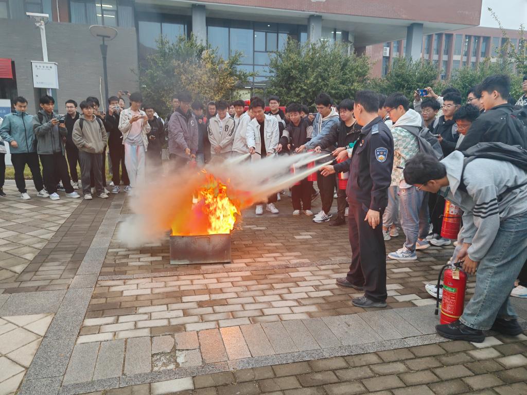 培训结束后,彭广峰老师现场指导学生进行灭火模拟演练,手把手地教授学生如何使用灭火器,深化学生对消防安全的认识,掌握灭火器等消防器材的操作要领,增强大家防火防灾的安全意识。