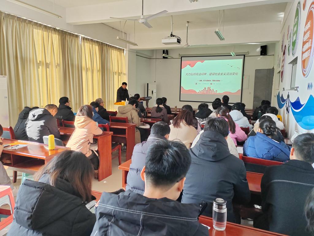 师生作“大力弘扬宪法精神,建设社会主义法治文化”为主题的专题讲座。讲座中代大为特别强调要坚持宪法自信,我国宪法是历史经验的总结、现实成果的确认、未来发展的指引,是中华民族站起来、富起来、强起来的根本法的确认和保障,是我们国家和人民经受住各种困难和风险考验、始终沿着中国特色社会主义道路前进的根本法制保证。他号召广大师生在工作、学习和生活中严格依法规范自己的行为,做学法、知法、懂法、守法的新时代法治模范。